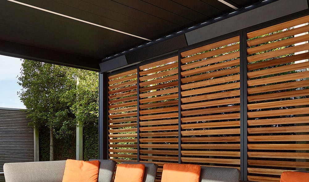 Deze architecturale zonwering laat je toe om te spelen met licht én houdt uiteraard de warmte tegen. De stijlvolle lamellen geven je gevel extra cachet.