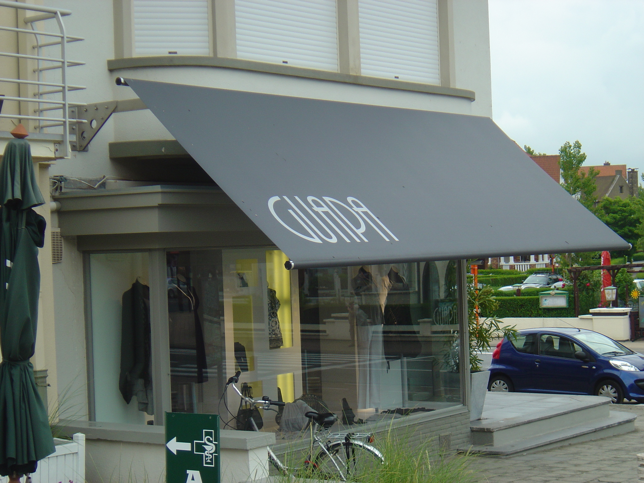 Deze vaste zonwering is ideaal om winkeletalages te beschermen tegen zonlicht. De markies kan bedrukt worden zodat je winkel of horecazaak extra opvalt in het straatbeeld.