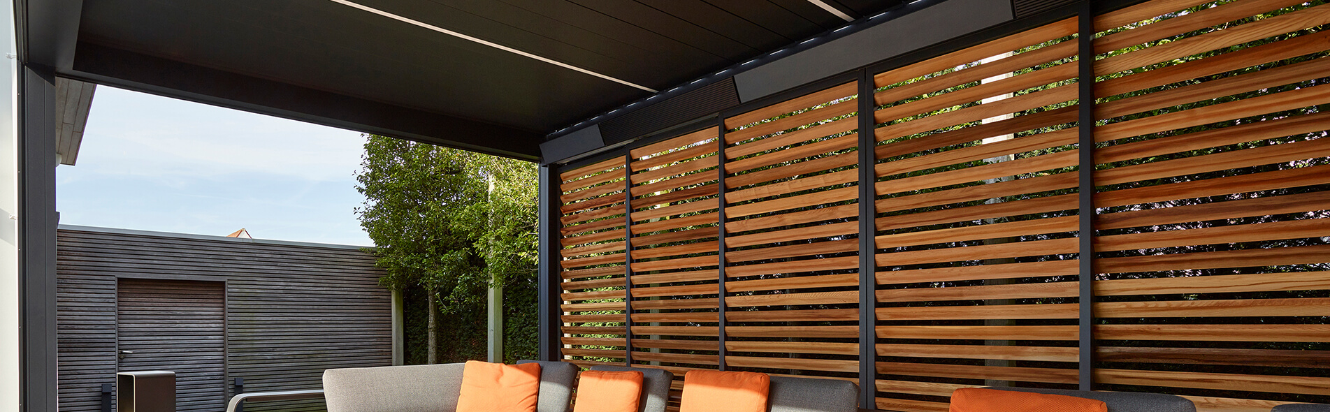 Deze architecturale zonwering laat je toe om te spelen met licht én houdt uiteraard de warmte tegen. De stijlvolle lamellen geven je gevel extra cachet.