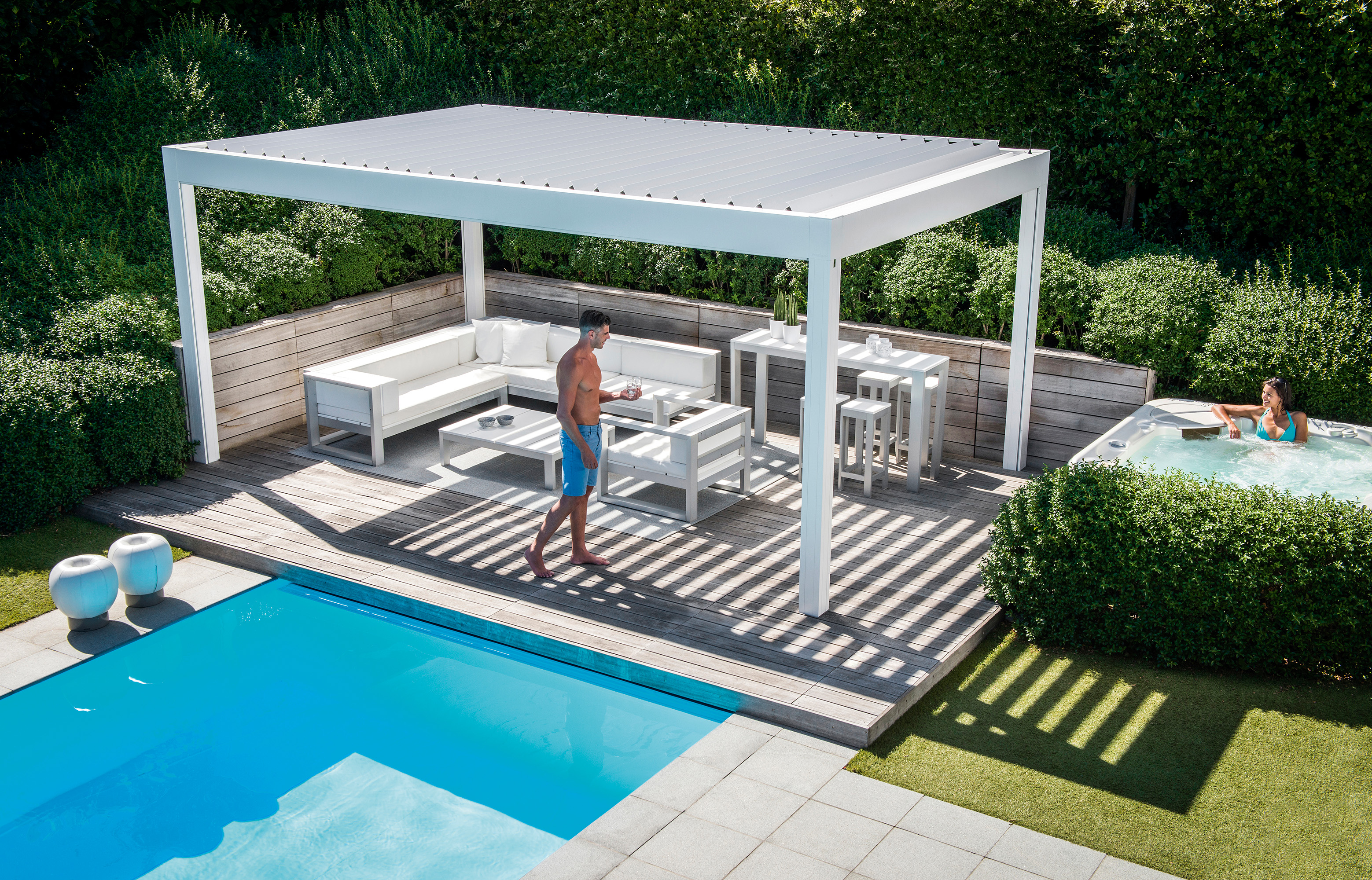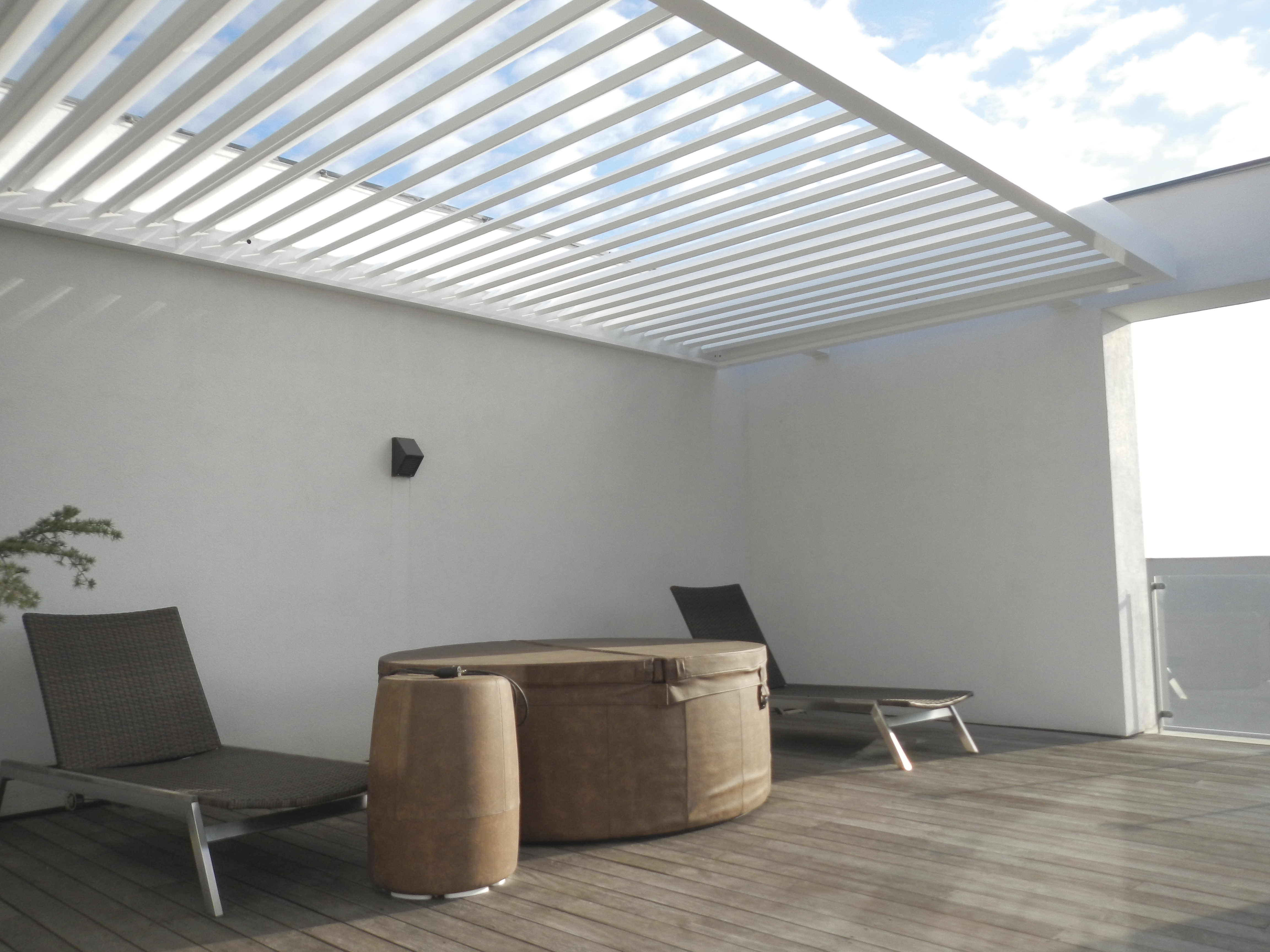 Elegante terrasoverkapping uit aluminium met roteerbaar lamellendak