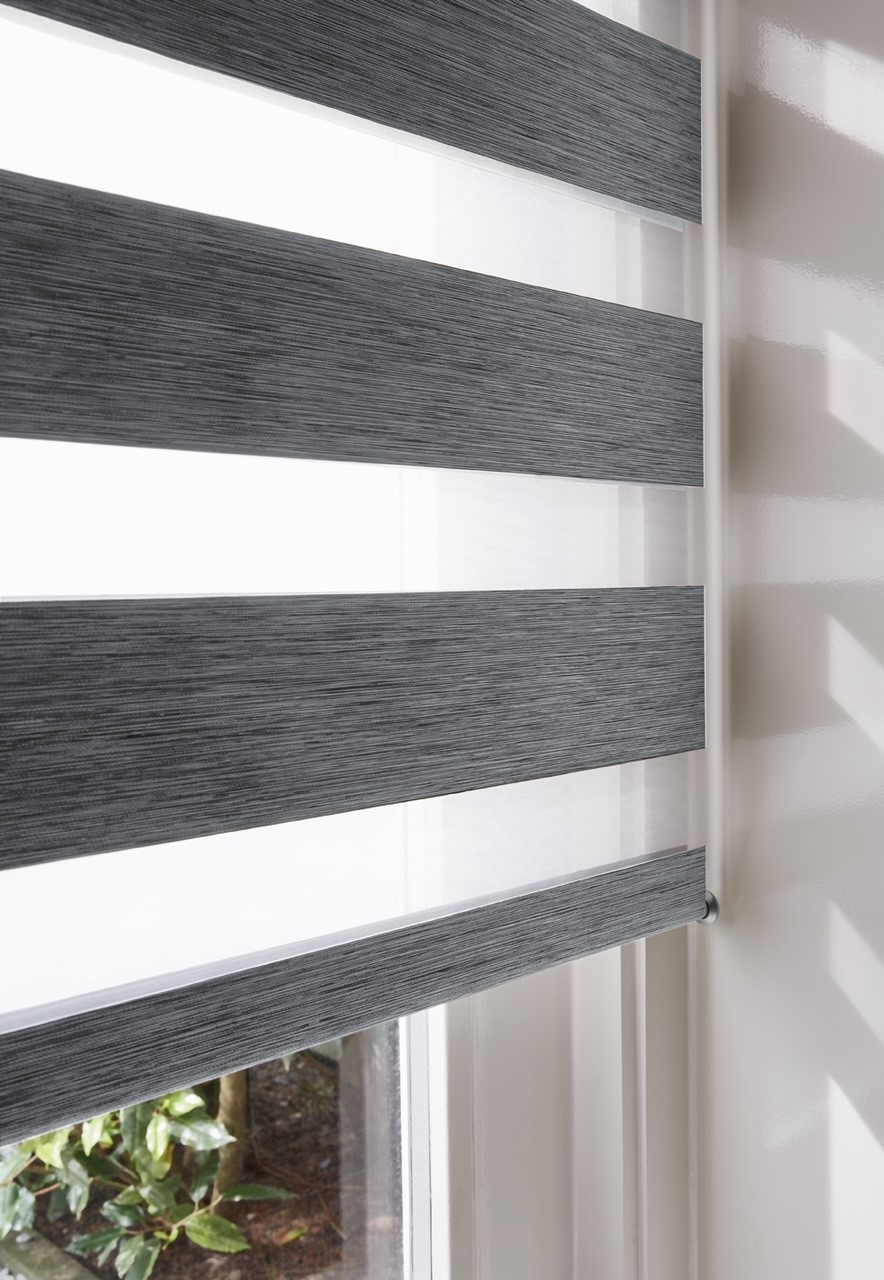 Minimalistisch dubbel rolgordijn voor brede raampartijen